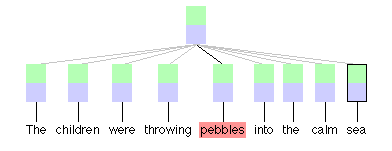 If now you wish to label "children" and "pebbles" and "sea" as nouns, simply click on "n" in the form bar, and then click, respectively, on the node above "children", the node above "pebbles", and the node above "sea". (Note that you only have to click once on "n" in the form bar. The computer will remember this symbol until you deselect it - for example, by selecting a different symbol from the bar.)