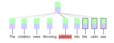 The red background for "children" and the dark line connecting it to the top of the tree indicate that this word does not require any further structural analysis - it only needs to be labelled for form and function. For all the other words, however, more structure must be discovered.