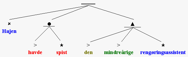 også af en gruppe med 2 ord. Her er kernen træt og dependenten