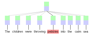 If now you wish to label "children" and "pebbles" and "sea" as nouns, simply click on "n" in the form bar, and then click, respectively, on the node above "children", the node above "pebbles", and the node above "sea". (Note that you only have to click once on "n" in the form bar. The computer will remember this symbol until you deselect it - for example, by selecting a different symbol from the bar.)