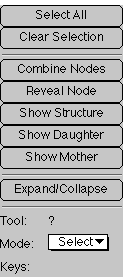 On the other hand, clicking on any expanded node will "collapse" that node, returning it to its earlier state (no daughters). Clicking, for example, on the top node in the above expansion will return the tree to its start position.