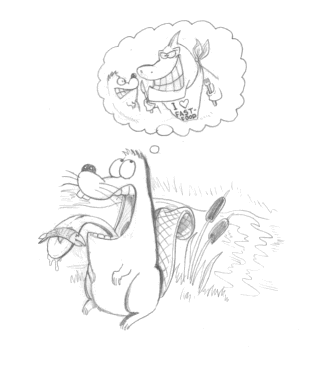 der spiser fisken?" spørger han. "Det kunne jo være omvendt.