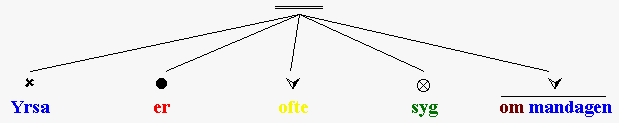 Prædikativer er noget man er, eller bliver, eller ser ud til at være, eller som andre tror man er. Prædikativer er ofte adjektiver, og hvis de er, bliver de sat i flertal sammen med det ord, de henviser til (fx: han er syg, det er sygt, de er syge). Husk, at man ikke kan have et objektsprædikativ (Å, Po) uden et direkte objekt (▲, Od), og at man ikke kan have et subjektsprædikativ  (Ä, Ps) i en sætning med et direkte objekt (▲, Od). Denne øvelse skal udføres som den forudgående, dvs. med træer, gruppestreger og ordklassefarvning: