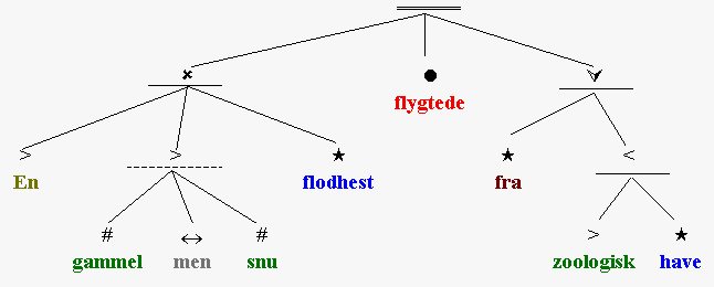 I stedet for at tegne fuldvoksne træer med det samme, kan det være en idé, først at lave en "flad" analyse af sætningerne, hvor de sideordnede led markeres én efter én på samme niveau som sætningens eller gruppens øvrige led, dvs. uden brug af konjunkt-symboler (#) og paratagmer (- - - - -):