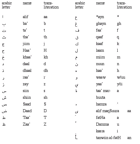 2. The emphatic letter qaaf is transliterated with a "q" in