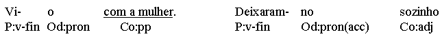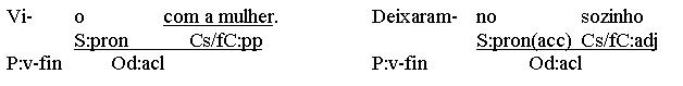 (deixaram-no lá., vi-o aqui).